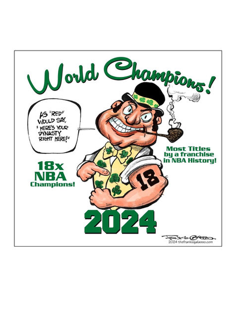 Frankie Galasso a sports cartoonist. made his start with the Evening Times of Pawtucket, RI. His work later found its way onto the Editorial pages of The Providence Journal. While working two jobs, he would self-syndicate himself into some of the most prominent newspapers in the country, with The Boston Globe and LA Times at the top of the list. His editorial and sports cartoons were picked up by over 36 self-syndicated and free-lance newspapers. Although most papers took on Frankie’s services for his editorial cartoons and caricatures, he sent out a weekly sports cartoon at no charge to revive the great American art form of sports cartooning.